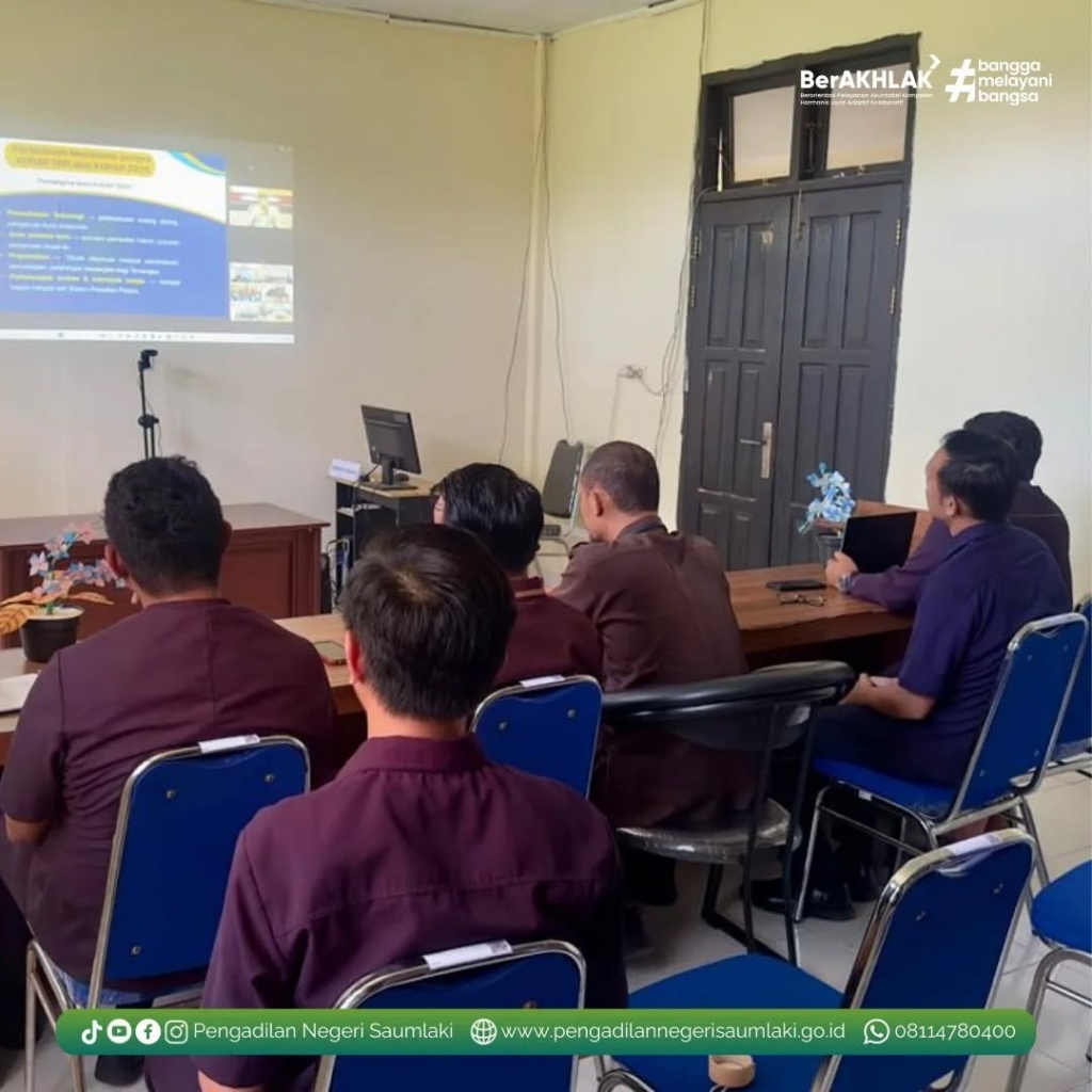 Bertempat di Ruang Command Center, Ketua Pengadilan Negeri Saumlaki bersama para hakim mengikuti Kegiatan Pertemuan Rutin Sarasehan Interaktif (Perisai) Episode Ke-12 secara daring dengan Topik Tinjauan Pembaharuan KUHAP: “Das Sollen Peran Pengadilan Dalam Sistem Peradilan Pidana.